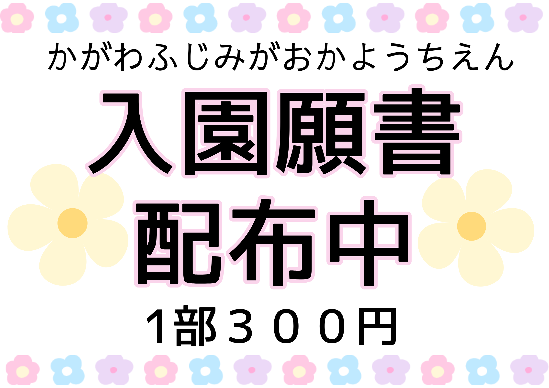 令和8年度入園願書を配布しています。1部300円です。ご希望の方は幼稚園までお越しください。
