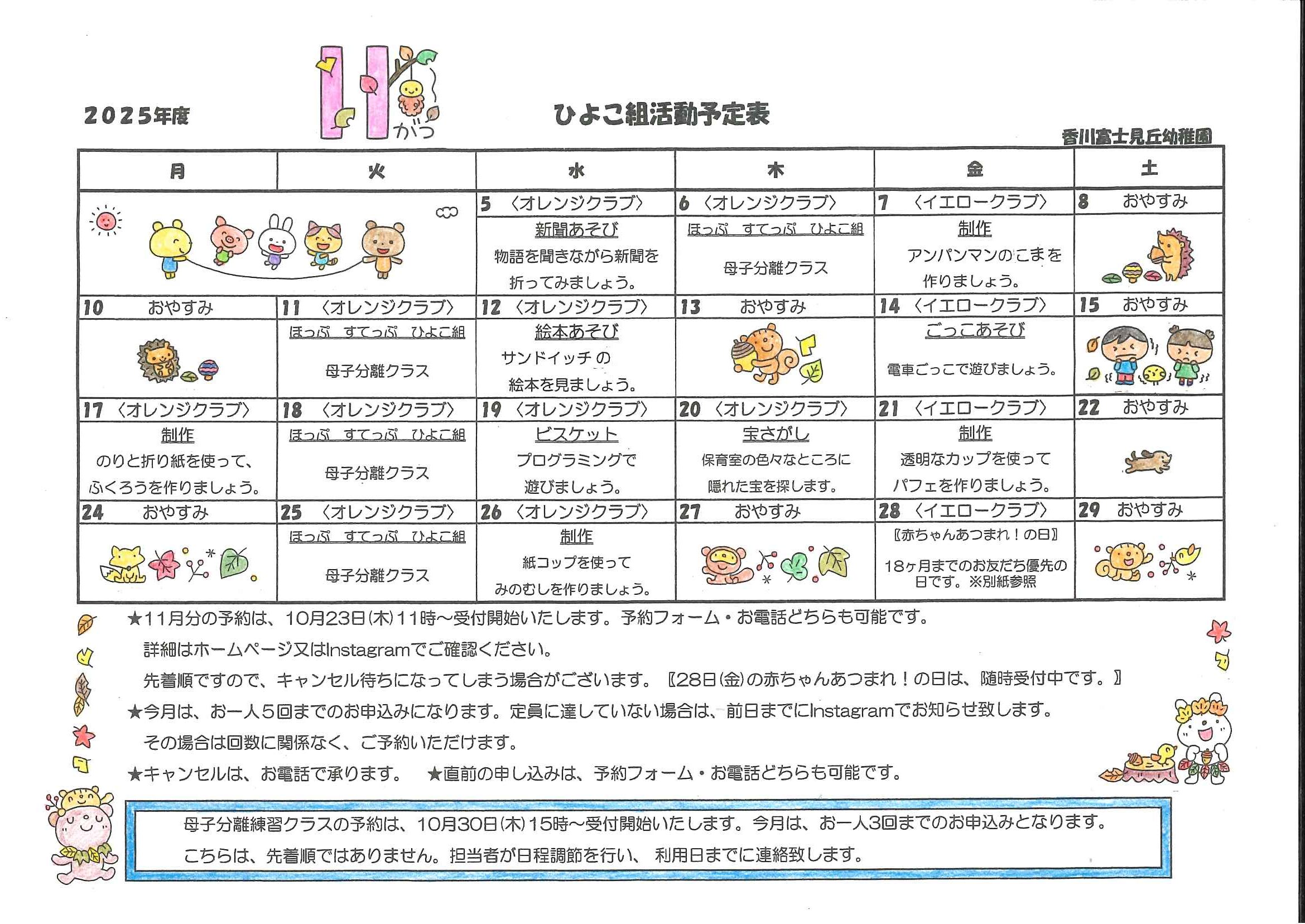 ★11月分の予約は、10月23日(木)11時~受付開始いたします。