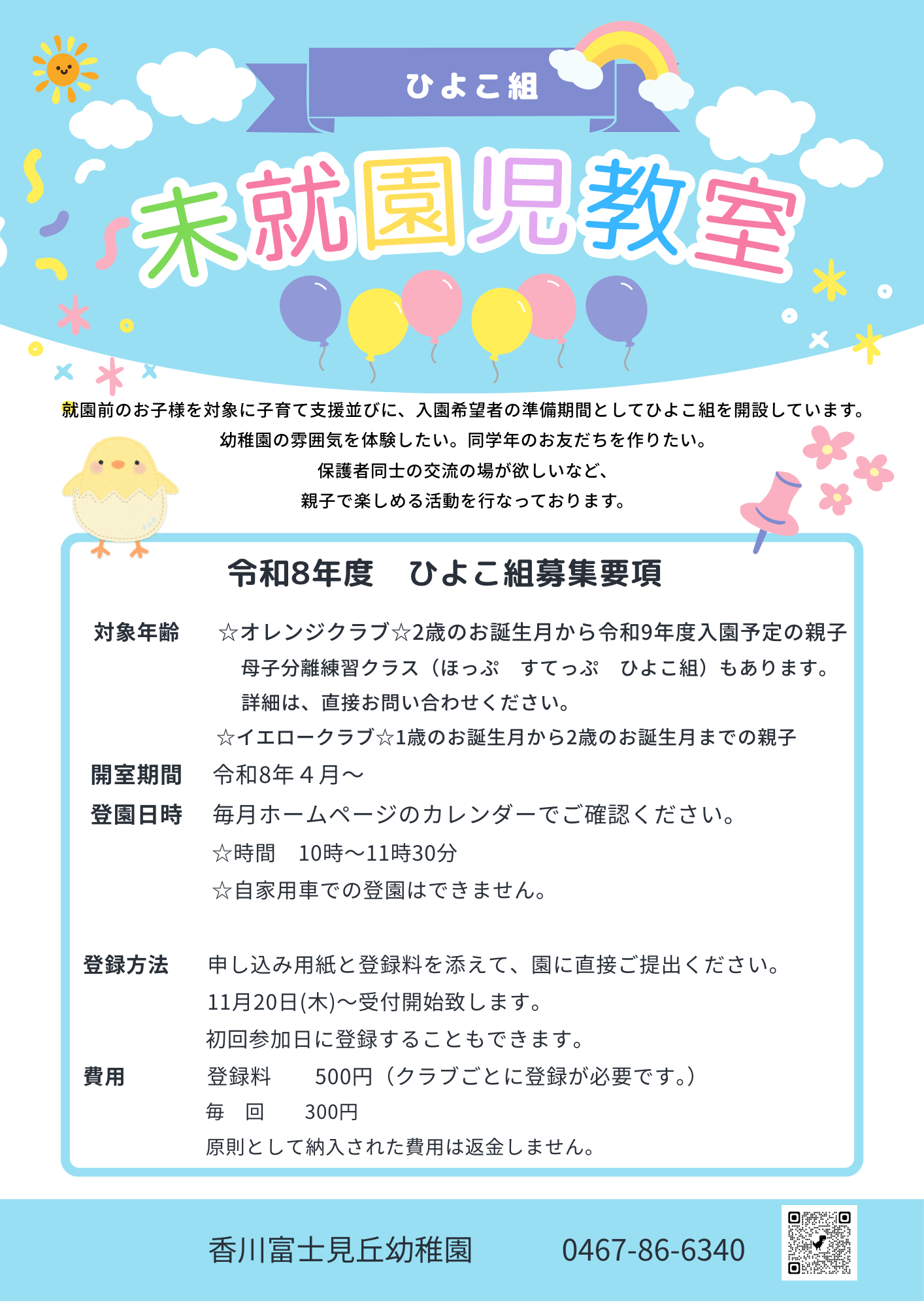 就園前のお子様を対象に子育て支援並びに、入園希望者の準備期間としてひよこ組を開設しています。