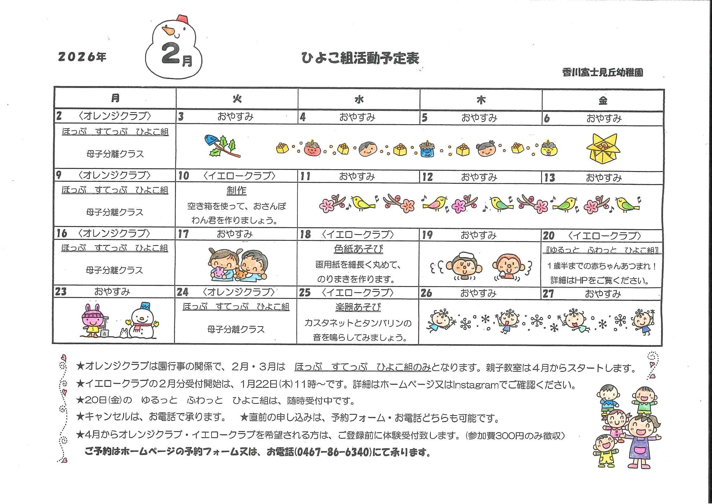 ひよこ組2026年2月申込みについて